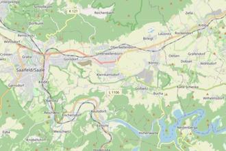 Der Geltungsbereich des Bebauungsplanes umfasst die Flurstücke der Anlage 1 in den Gemarkungen Großkamsdorf, Oberwellenborn und Könitz. Das Plangebiet befindet sich zwischen den Ortslagen Kamsdorf, Oberwellenborn und Könitz. Die Lage in der Ortschaft ist im Anschluss dieser Bekanntmachung in der Anlage 0 dargestellt.