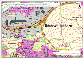 Planungsziel des vorhabenbezogenen Bebauungsplans „PV-FFA ehemaliges Umspannwerk Unterwellenborn“ ist die Überplanung des Flurstücks 535/11, Gemarkung Unterwellenborn, Flur 0 und des Flurstücks 535/12 (tlw.), Gemarkung Unterwellenborn, Flur 0. Hierdurch sollen die bauplanungsrechtlichen Voraussetzungen für die Errichtung einer Photovoltaik-Freiflächenanlage geschaffen werden. Der Gemeinderat der Gemeinde Unterwellenborn hat den Vorentwurf in seiner Sitzung am 08.05.2024 mit Beschluss-Nr.: 2/33/GR/24 gebilligt und die Durchführung der beiden Beteiligungsschritte gem. § 3 Abs.1 BauGB und § 4 Abs. 1 BauGB beschlossen.