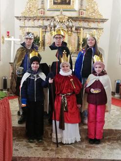Anschließend zogen sie in 6 Gruppen durch die Straßen und sammelten den stolzen Betrag von 2.697,00 Euro. Zum Aufwärmen gab es dann im Pfarrsaal für alle heißen Tee und Pizza, und die Kinder sahen den Film zur diesjährigen Sternsingeraktion.