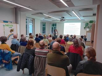 Die anwesenden Hausbesitzer nutzten die Gelegenheit der Fachfrau zahlreiche Fragen zu ihrem Bauvorhaben zu stellen. Nach dem Vortrag wurde sich noch in lockerer Runde am Büchertisch ausgetauscht.