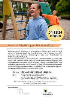 Die Veranstaltung findet am 4. Dezember um 14:00 Uhr statt. Es handelt sich um eine Kooperation zwischen dem Stadtteilbüro Leinefelde Südstadt und dem Frauenzentrum Leinefelde.