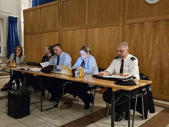 Nach der Begrüßung der Anwesenden durch den Ortsbrandmeister, Raphael Hartmann, wurden die verstorbenen Kameraden geehrt. Anschließend berichtete der Ortsbrandmeister über die Arbeit der Feuerwehren im vergangenen Jahr. Unter anderem gab er einen Überblick über die geleisteten Einsätze, die Anzahl der Mitglieder und die Aus- und Weiterbildungen der Kameradinnen und Kameraden. Daraus ergaben sich auch einige Beförderungen und Bestellungen, die durch den Ortsbrandmeister und der ersten Beigeordneten, Frau Stark, überreicht wurden.