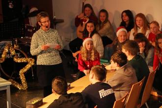 Viel und herzhaft lachen durfte das Publikum bei zwei Sketchen. Bei dem Sketch aus der AG Museum, geleitet von Frau Gabel, ging es um den normalen Wahnsinn einer Vertretungsstunde mit dem Thema: Die biblische Geschichte der Weihnachtsfeier.