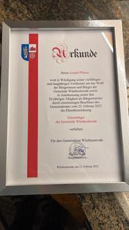 zeichnung einstimmig gefasst hatte, übergab die jetzige Bürgermeisterin, Kerstin Stark, dem Altbürgermeister feierlich die Ernennungsurkunde zum „Ehrenbürger“.