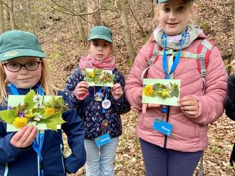 Die Junior-Ranger Helene, Klara, Zoé und Anthony entdecken den neuen Rundwanderweg und waren als "Künstler" am Werk.