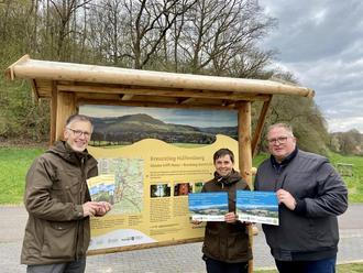 Das Thüringer Ministerium für Umwelt, Energie und Naturschutz förderte die Vorhaben „Rundwanderweg Kreuzstieg Hülfensberg“ und „Verweilstation“ mit circa 50.000 € im Zuge der Mittel für nachhaltige Regionalentwicklung in den Nationalen Naturlandschaften (2021). „Im gesamten Naturpark Eichsfeld-Hainich-Werratal konnten wir damit viele kleine Projekte mit engagierten Kommunen umsetzen. Getreu dem Motto „Mensch und Natur gehören zusammen“ leisten wir einen wichtigen Beitrag für die Regionalentwicklung, den Tourismus und die Bildung“ so Naturparkleiterin Claudia Wilhelm, die Martin Kozber die offiziellen Förderplaketten überreichte.