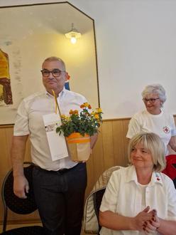 Besondere Anerkennung erhielt Helga Gümpel für ihre jahrelange, verdienstvolle Arbeit, die im Jugendrotkreuz begann und sich in über 100 Blutspenden und Vorstandsarbeit fortsetzte. Sie wurde von Martina Kaufhold und Guido Solf als "Mutter der Blutspende" im DRK Ortsverein Uder ausgezeichnet.