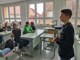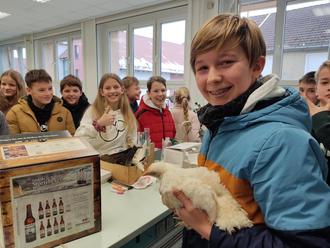 Andere Schüler konnten zwar kein lebendes Tier mitbringen, aber das hielt Silas nicht ab, für seinen Vortrag ein ausgestopftes Wildschwein (Frischling) mitzubringen, an dem er alle wichtigen Fakten präsentierte. Und wenn es nicht möglich war ein vollständiges Tier mitzubringen, dann waren es eben Teile davon, wie das von Oliver mitgebrachte Geweih. So erlebten alle Schüler mal einen ganz anderen MNT Unterricht.