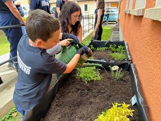 Der Tag begann mit einer Wanderung, bei der die Kinder Stöcke, Rinde und Steine für Hochbeete sammelten. Nach einem gemeinsamen Mittagessen ging es mit dem Bau und der Bepflanzung der Hochbeete weiter. Besonders stolz waren die Kinder auf die selbstgebastelten und beschrifteten Schilder für die Beete.