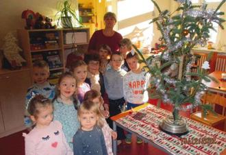 Und weil es in der Weihnachtszeit immer so gemütlich und heimlich zugeht, besuchte uns Frau Sömmer mit ihrem ganz besonderen Weihnachtsbaumständer, er ist schon 100 Jahre alt. In ihn haben wir unseren festlich geschmückten Weihnachtsbaum gestellt. Ihr glaubt nicht, was dieser Weihnachtsbaumständer alles kann, er kann singen, klingen und sich drehen. Da haben wir vielleicht gestaunt. Über ihren Sohn Ingo erzählte sie eine interessante Weihnachtsgeschichte. Wir hörten aufmerksam zu. Das war eine wunderbare Überraschung und wer weiß, vielleicht hat es Frau Sömmer bei uns auch gefallen und sie kommt wieder mit ihrem Weihnachtsbaumständer zu uns. Wir würden uns jedenfalls sehr freuen.