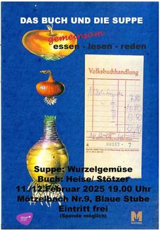 wir, Anna Barth und Volkmar Knoch aus Schloßkulm und Mötzelbach, möchten Euch zu unseren Veranstaltungen am 11. und 12. Februar nach Mötzelbach Hof 9 einladen! Ab 19 Uhr gibt es in der Bohlenstube eine gemeinsame Suppe, die wir bei guter und unterhaltsamer Literatur auslöffeln. Nach der gut besuchten Veranstaltung im Mai 2024 wollen wir die Beschäftigung mit DDR Geschichte und Literatur fortsetzen und mit euch ins Gespräch kommen. Die Veranstaltung begrüßt Menschen jeden Alters und wir freuen uns auf ganz unterschiedliche familiäre Hintergründe und persönliche Erfahrungen. Am 12.2.2025 möchten wir den Abend mit einer kleinen künstlerischen Praxis ausklingen lassen (keine Angst, man muss nix wissen und nix können) und werden vom Künstler Timo Behn aus Rudolstadt begleitet. Die Veranstaltung findet aufgrund der Zusammenarbeit der MOTHEK, Neuland gewinnen e.V. und Zukunftswerkstatt Schwarzatal e.V. statt. Wir freuen uns auf euch!