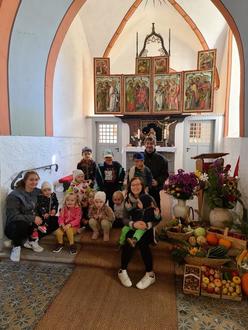 Am 25.09.2023 zog es die Hexengrundknirpse erneut in die Kirche in Engerda und wieder gab es einen besonderen Anlass: das Erntedankfest. Herr Pfarrer Thiel erwartete uns in einer schön geschmückten Kirche. Die Kinder hatten ein kleines Körbchen mit Erntegaben dabei, welche sie vorne am Altar ablegten. Herr Pfarrer Thiel führte uns durch einen schönen Kindergottesdienst und wir hatten Spaß beim Singen und Beten. Wir danken Herrn Pfarrer Thiel ganz herzlich für die schöne Ausgestaltung des Erntedankgottesdienstes und freuen uns schon auf nächstes Jahr.