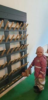 Eine sowohl äußerst praktische, als auch optisch sehr ansprechende Überraschung bescherte uns Mailas Familie aus Neusitz. Papa David werkelte viele Stunden an einem Stiefelregal für alle Kinder unseres Hauses. Schon seit einigen Jahren haben wir Erzieherinnen darüber nachgedacht, wie wir unser Platzproblem in den Garderoben durch die Vielzahl der Gummistiefel lösen könnten. Bisher ohne eine praktikable Lösung. Und nun hängt die Lösung bei uns im Schuppen an der Wand. Geliefert und montiert als Komplettpaket! Darüber freuen wir uns alle wirklich sehr und möchten uns auf diesem Weg auch noch einmal herzlich bei Mailas Eltern bedanken.