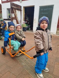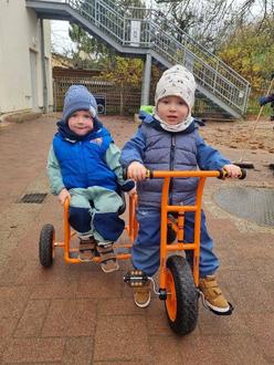 Ebenfalls neu in unserem Schuppen befinden sich 4 große Fahrzeuge zum Spielen für unsere Kinder. Angeschafft wurden diese aus Mitteln vom Landessportbund Thüringen, die für sogenannte Kooperationsvereinbarungen mit dem Kneipp-Verein Bad Berka e. V. sowie dem SV 1956 Großkochberg e.V. und unserem Kindergarten ausgeschüttet wurden. Dadurch, dass zwei Erzieherinnen unserer Einrichtung im Besitz einer Trainerlizenz im Kinder- bzw. Breitensport des DOSB sind und mit ihnen regelmäßig Sportangebote für unsere Kinder durchgeführt werden, erhalten wir eine finanzielle Förderung dafür. Nun können sich unsere Kids auch ganz alltäglich auf diesen Fahrzeugen mit verschiedenen motorischen Herausforderungen bewegen und Freude daran haben. Ein großes Dankeschön an den Kneipp-Verein Bad Berka e. V. und den SV 1956 Großkochberg e.V. für die schon jahrelange gute Kooperation und Unterstützung bei unseren Vorhaben!
