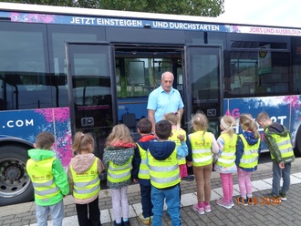Des weiteren absolvierten wir die Busschule. Hier lernten wir viel über das sichere Verhalten an der Bushaltestelle und wie man im Bus richtig sitzt. Aber das allercoolste hier war, die Gefahrenbremsung mit dem Bus, zum Glück ging alles gut aus. Der Busfahrer zeigte uns damit, dass richtiges sitzen im Bus ganz wichtig ist. Vielen Dank hiermit an den Busfahrer Herr Himmelreich und an Kombus.