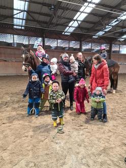 Am 08.12.2023 fuhren die Hexengrundknirpse mit dem Bus sehr früh nach Großkochberg. Anlass dafür war ein Ausflug in die dortige Reiterhalle. Zunächst jedoch kehrten wir in den Vereinsraum ein und aßen unser Frühstück. Danach durfte jeder, der wollte, auf einem großen Pferd oder einem Pony reiten. Alle hatten viel Spaß. Zum Abschluss gab es noch eine warme Suppe, die alle bis zum letzten Tropfen ausgelöffelt haben. Wir bedanken uns bei allen, die diesen Ausflug möglich und unvergesslich gemacht haben.