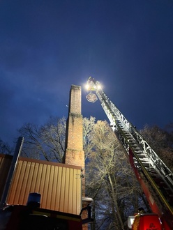 Unterstützung bekam der Verein von der Freiwilligen Feuerwehr Bad Blankenburg. Kontakt stellte Berufsfeuerwehrmann Michael Grebe her, der selbst Mitglied im Heimatverein ist. Diese nutzte gleich die Gelegenheit für eine Anleiterübung. Bei der Installation der Unterlage leistete auch Andy Girbardt von der MMS Stahl- und Anlagenbau GmbH Rudolstadt Hilfe.