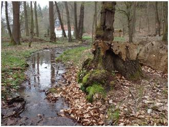 Die Forstmitarbeiter sehen in der Aufwertung des natürlichen Biotops durch Laubbaumarten eine Chance, der Versauerung und hohen Verdunstungsrate entgegen zu wirken. Den hier heimischen Feuersalamander wird es freuen, findet er doch zukünftig am schattig-krautigen Bachufer seine Lieblingsspeise, die Schnecke.