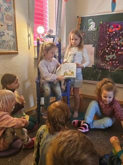 Wie gut es unseren ehemaligen „Sperlingen“ in der Grundschule „Heinrich Heine“ Uhlstädt geht, das haben wir von deren Lehrerin Frau Gröschner in einem Erfahrungsaustausch im Rahmen der Kooperationsvereinbarung zwischen Kindergarten und Grundschule bereits erfahren. Am 7. März konnten sich die Werkstattkinder selbst davon überzeugen, wie schnell ihre früheren Freunde und Geschwister Linnea und Marie das Lesen erlernten. Sie waren zu Gast beim Buchstabenfest der Werkstattgruppe und lasen hier eine Geschichte vor. Das Staunen und die Freude darüber waren riesengroß und wurden mit einem kräftigen Applaus belohnt.