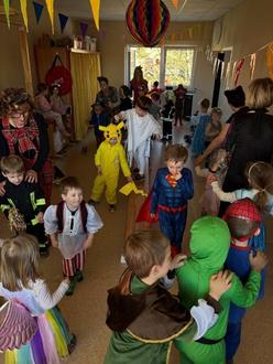 Am Rosenmontag wurde in unserem Kindergarten gesungen, getanzt und gelacht. Alle kleinen und großen „Sperlinge“ kamen lustig kostümiert und feierten ausgelassen den Fasching. Als fröhliche Polonaise zog die bunte Schar sogar durch den Ort Großkochberg. Die Eltern hatten mit jeder Menge Knabberzeug, Süßigkeiten, Säften und Deko-Artikeln die Haus-Party unterstützt. Vielen Dank dafür. Und einen lieben Dank an unseren Bürgermeister für die leckeren Pfannkuchen!