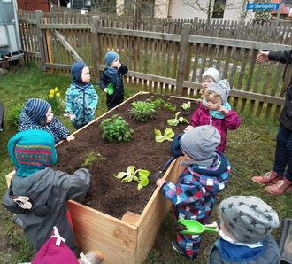 Für die Kleinen Sperlinge des Kneipp® Kindergarten „Am Sperlingsberg“ in Großkochberg begann der März auch mit etwas Neuem. Schüler der Klasse 10b, der Regelschule Neusitz, bauten im Rahmen eines Projektes ein Hochbeet. Nach Messungen, Standortauswahl und vielen Stunden Holzarbeit war es dann endlich soweit. Das Hochbeet fand seinen Platz im Garten der Kleinsten. Die Kinder der größeren Gruppen halfen bei der Befüllung des Beetes, sammelten sie doch Stöcke und Naturmaterialien. Die Schüler*innen füllten dann mit viel Erde das Hochbeet bis zum Rand und lieferten sogar noch Salatpflanzen, Kräuter und Sämereien.