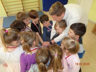 Einmal in der Woche, war Max vom Sport-Prävention-Diagnostik bei uns. Er zeigte mit uns viele Übungen um unseren Rücken zu kräftigen, wir übten an unserer Koordination, Konzentration und natürlich an der Ausdauer. Zum Abschluss unserer Rückenschule erhielte jeder von uns Vorschülern eine Medaille. Wir sind alle sehr stolz darauf. Vielen Dank an Max, es hat uns viel Spaß gemacht.