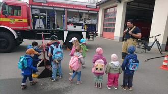 Herzlich wurden wir von Frau Siegert empfangen. Die Kinder waren aufgeregt und schauten sich neugierig die Bücher an. Nach eine kleinen Schnupperrunde sammelten sich alle im Vorleseraum. Dort wartete schon die Eule Barbara, die mit uns zusammen die Geschichte „Peterson und Findus - Aufruhr im Gemüsebeet“ hörte, die uns Frau Siegert vorlas. Danach konnten sich die Kinder noch ein paar Bücher ausleihen. Spontan liefen wir noch zur ortsansässigen Feuerwehr, wo uns Herr Jahn einen kleinen Einblick in die Arbeit der Kameraden vermittelte. Außerdem konnten die Kinder noch ein „Feuer“ löschen, was allen sehr viel Spaß machte. Alles in allem war es ein sehr gelungener Tag und die Kinder fuhren erschöpft nach Hause.