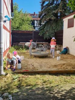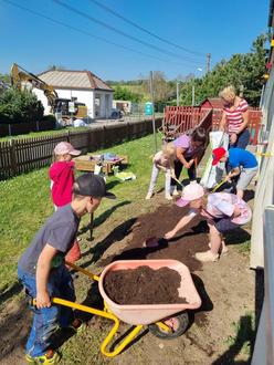 Die Matsch-Strecke, die sich noch im Winterschlaf befand, wurde durch die vielen kleinen fleißigen Arbeiter „schick“ gemacht, Unkräuter aus dem Sand und um den Sperlingsteich herum gezupft, der Rasen gelüftet und getrimmt. Somit war nicht nur der Hof wieder in einem ordentlichen Zustand, auch die Matsch-Saison konnte beginnen. Außerdem gestalteten die Kinder an ihrem Waldtag im Vorgarten ein Hügelbeet. Auch hier mussten die Kinder planen, welche Arbeiten dafür zu erledigen sind und welche Bedingungen die Samen benötigen, um auch wirklich bunte „Thüringer Blumen“ zu werden. Für diese Aktion wurden die Blumensamen von Antenne Thüringen genutzt, welche mit viel Losglück unserem Haus zu Gute kamen. Die Eltern von Max und Janosch hatten im Radio von der Aktion „Wir machen Thüringen bunter“ gehört und unsere Einrichtung kurz entschlossen zur Verlosung angemeldet.