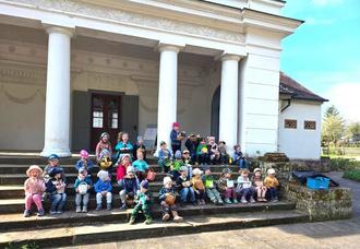 Die wunderschöne und liebevoll gepflegte Parkanlage vom Schloss Kochberg ist zu jeder Jahreszeit einen Ausflug wert. Am 15. April 2025 begaben sich wiederum alle Kinder und Erzieherinnen vom Kindergarten „Am Sperlingsberg“ bei herrlichem Frühlingswetter auf den Weg dorthin - diesmal mit ihren Körbchen -weil der Osterhase gesichtet wurde. Die freundlichen Gärtnerinnen und Gärtner vom Schlosspark laden uns jedes Jahr vorm Osterfest zur Ostereiersuche zu sich ein. Und tatsächlich: auch in diesem Jahr versteckte der „Osterhase“ für jedes Kind ein kleines Osternestchen mit Süßigkeiten, natürlich bunten Eiern und einer kleinen Überraschung. Danke lieber Osterhase, liebes Team vom Schlosspark und der Klassik Stiftung Weimar für das Sponsoring.