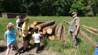 Dort wartete auf uns ein liebevoll geschmückter Kutschenanhänger, welcher von einem Traktor gezogen wurde. Nachdem alle aufgestiegen waren, fuhren wir in Richtung Spaal bis zur Schmiedener Kreuzung und von dort aus liefen wir zu unserem Ziel, wo wir von Herrn Rolf Greiner vom Forstamt Bad Berka begrüßt wurden.