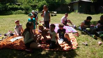Er führte uns eine Runde um das Gelände des Spaals und erzählte uns viel Wissenswertes über den Ort und die Umgebung. Nach der Führung wartete bereits das von den Eltern vorbereite Mittagessen, welches wir bei bestem Wetter genossen. Die Kinder hatten viel Spaß beim Kinderschminken, Kumutschen-Weitwurf und beim Baum klettern.