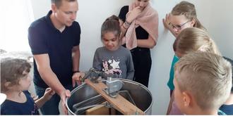In Engerda verdeutlichte Familie Siegert das alte Handwerk des Schusters und Großmutter Hauspurg spielte Kinderlieder auf der Orgel. In Schmieden erlebten die Kinder nicht nur die Tradition des Bergauf- Straßenkegelns, sondern hatten einen fabelhaften Projekttag rund um die Bienen und die Imkerei. Mit Matthias Kellner durften die Kinder Honig schleudern und abfüllen, Frau Eberhardt stellte Kerzen aus Wachs mit den Kindern her und Peggy Kellner erklärte hinreißend alles rund um die Bienenwelt.