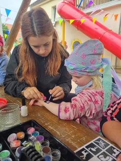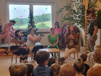 Am 3. Juni feierten alle Kinder mit ihren Erzieherinnen den Internationalen Kindertag. Ein Highlight des Tages gestalteten die Eltern des Kindergartens: in einem liebevoll aufgeführten und mit viel Aufwand vorbereitetem Theaterstück nahmen sie uns mit auf „Die Suche nach dem Glücksstein“. Ihr Lohn war ein tosender Applaus aller Zuschauer und strahlende Kinderaugen. Für diesen gelungenen Beitrag ein herzliches Dankeschön an unseren Förderverein und vor allem die mutigen und äußerst talentierten Mamas Anne, Sabrina, Monique, Linda, Marlen, Ilze und Katrin! Wie in jedem Jahr gab es außerdem für die Kids viel Spiel und Spaß, Eis und Pommes, Bastelangebote und Musik.