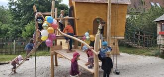 Die Kinder vom Sperlingsberg entdecken ihren neuen Spielplatz.
