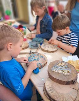 Das Team des Kindergartens hatte ein buntes Programm vorbereitet, das keine Wünsche offen ließ. An liebevoll gestalteten Spiel- und Bastelstationen konnten die Kinder kreative Blumenhaarbänder flechten, bunte Nagelbilder gestalten, sich bei „alten Spielen“ wie Dosen werfen und Eierlaufen versuchen, sowie Tanzen und Singen für Gitarrenklängen oder ein persönliches Medaillon mit dem Logo des Kindergartens - dem kleinen Sperling - anfertigen. Überall hörte man fröhliches Lachen, sah konzentrierte Gesichter und spürte die Begeisterung, mit der die Kinder ans Werk gingen.