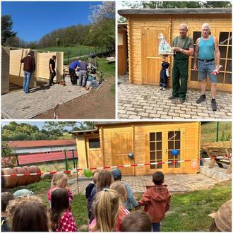 Auf dem großen Spielplatz der Waldgeister gab es dieses Jahr eine besondere Baustelle. Wind und Wetter, sowie viele Jahre hatten der alten Spielgerätehütte schwer zugesetzt - es wurde Zeit für etwas Neues.
