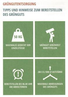 Der Grünschnitt ist wie bisher auch am Entsorgungstag gebündelt und ohne Fremdstoffe bereitzustellen. Der Durchmesser von Einzelteilen darf maximal 10 cm, Gewicht der Bündel maximal 50 kg und Länge der Bündel maximal 2 m betragen. Für Kleinstfraktionen können die Papiersäcke mit Logo des AZV (separat zu erwerben in den Verkaufsstellen) verwendet werden. Die Abholung erfolgt kostenfrei, ausschließlich auf bestätigtem Termin.