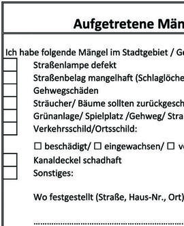 Die Stadt Vacha / Gemeinde Unterbreizbach gibt allen Bürgern die Möglichkeit, auf Missstände in unserer Stadt/ Gemeinde bzw. in den Ortsteilen hinzuweisen. Mängel können somit schneller erfasst und behoben werden.
