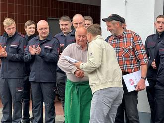 Zum Höhepunkt des Tags durfte Bürgermeister Martin Müller den Feuerwehrkameraden Klaus-Peter Schwarz für 50 Jahre Feuerwehrdienst und den Feuerwehrkameraden Alfred Güth für 60 Jahre Dienst in der Feuerwehr auszeichnen. Außerdem wurde durch Kreisbrandinspektor Christian Grebe offiziell ein neues Fahrzeug in den Dienst der Feuerwehr Vacha gestellt. Er überreichte Wehrführer Matthias Jakob die Schlüssel für einen neuen CBRN-Erkunder. Dieses Fahrzeug für den Zivilschutz dient der Abwehr und Untersuchung von chemischen, biologischen, radiologischen und nuklearen Gefahrenstoffen. Die Feuerwehr Vacha ist für diese Technik speziell ausgebildet und rückt bei entsprechenden Gefahrenlagen im gesamten Wartburgkreis aus.