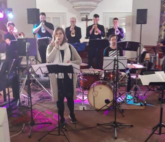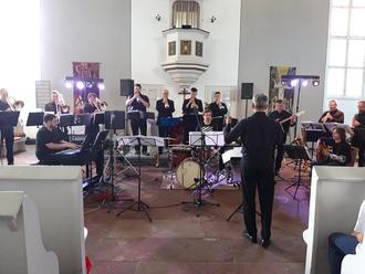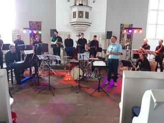 Mit rund 20 Musikern und Solisten war die Bigband unter der musikalischen Leitung von Jochen Wölkner angereist und sorgte für einen satten Sound, der durch die gute Akustik in der Johanneskirche voll zum Tragen kam.