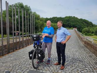 Am Dienstag, dem 18.06.2024 machte Oliver Trelenberg aus Hagen Station in Vacha. Er fährt aktuell mit seinem Fahrrad in 87 Tagen 5.100 Kilometer durch Deutschland und sammelt dabei Spenden für den Verein „wünschdirwas e.V.“ aus Köln.