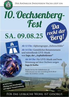 Am Samstag, dem 9. August 2025, heißt euch der Rhönklub Zweigverein Vacha wieder herzlich willkommen zum traditionellen Oechsenbergfest.