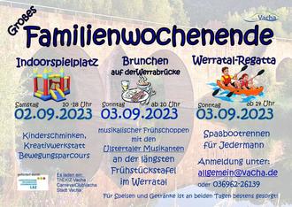 Am Samstag, dem 02.09. findet im und um das Vachwerk ein großer Indoorspielplatz statt. Organisatoren sind das ThEKiZ Vacha und der Carneval Club Vacha. Große Hüpfburgen, ein Soccer-Court sowie viel Spiel und Spaß erwarten Groß und Klein.