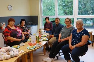 Ganz besonders freuen wir uns über die Bereitschaft ehrenamtlicher Bürgerinnen der Stadt Vacha die Babybegrüßung mit selbst gestrickten Babystrümpfchen zu unterstützen. So fand der erste gemütliche Stricktreff im Kindergarten „Kinderland“ in Völkershausen statt. Die älteste Strickerin Else Blaurock, 86 Jahre aus Völkershausen, freute sich über die Runde und äußerte: „ich muss noch lange leben, ich habe noch zu viel Wolle zu verstricken“. Reinhilde Kühnhold kann sich vorstellen, ab Herbst einen offenen Handarbeitstreff für Eltern oder interessierte Bürger aus den Ortsteilen mit ihren Kenntnissen zu unterstützen.