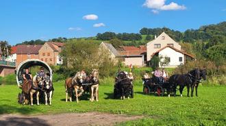 Es haben 8 Fuhrmänner mit ihren Gespannen, vom 4-Spänner Mini-Shetty bis zum Rheinisch-Deutschem Kaltblut, die Teilnahme angemeldet.