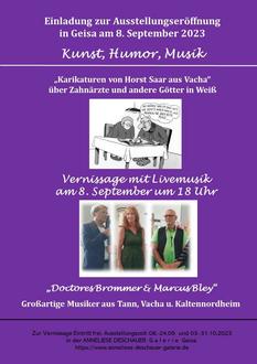 Geisa. Am 8. September um 18 Uhr beginnt in der Anneliese-Deschauer-Galerie die Vernissage zur Eröffnung der neuen Sonderausstellung mit Karikaturen von Horst Saar aus Vacha und Livemusik von „Doctores Brommer & Marcus Bley“. Der Förderverein Kunst, Kultur und Wissenschaft Geisa e.V. lädt alle Interessierten dazu ein.