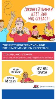 Die Zukunftskonferenz wird im Golf- und Landhotel „Alte Fliegerschule“ in Eisenach stattfinden und richtet sich an Kinder und Jugendliche im Alter von acht bis 20 Jahren. Ziel ist es, die Teilhabe junger Menschen an gesellschaftlichen Entscheidungsprozessen zu fördern und ihnen die Möglichkeit zu geben, ihre Perspektiven zu den genannten Themen einzubringen.
