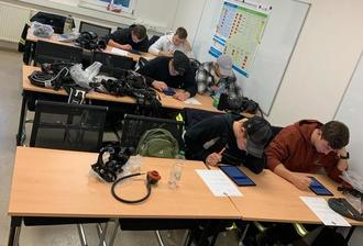 Am 25. November konnte erstmals ein digitaler Leistungsnachweis den Papierfragebogen beim Lehrgang „Atemschutzgeräteträger“ ablösen. Neben normalen Multiple-Choice-Aufgaben zum Auswählen der richtigen Antworten können in die digitale Prüfung auch Lückentexte, Rangfolgen, Bildzuordnungen oder Videosequenzen eingepflegt werden. Zukünftig sollen alle Kreisausbildungen mit einem digitalen Leistungsnachweis enden, das webbasierte System kann dabei über einen mobilen Hotspot auch an externen Standorten durchgeführt werden.