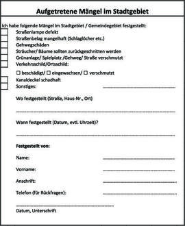 Die Stadt Vacha und die Gemeinde Unterbreizbach gibt allen Bürgern die Möglichkeit, auf Missstände in unserer Stadt/ Gemeinde bzw. in den Ortsteilen hinzuweisen. Mängel können somit schneller erfasst und behoben werden.