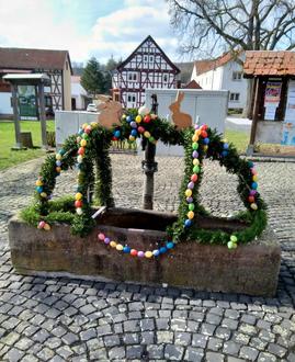 Die Landfrauen in Wölferbütt haben den Brunnen am Dorfplatz österlich geschmückt.